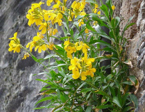 | Erysimum cheiri (L.) Crantz | Violier jaune ; Giroflée | Brassicaceae | Q (S) | 2 | RR | horticole | graines | interstices urbains | > | |